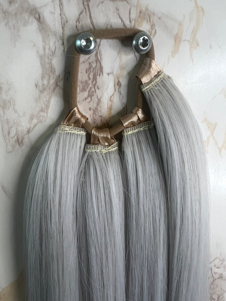 A soft, silvery tone with a hint of moonlit glow. This elegant, light shade brings a gentle, refined look that's perfect for those who love subtle, cool tones.